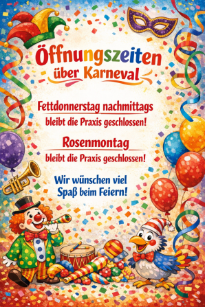 Wir bitten immer, auch bei akuten Erkrankungen, um vorherige telefonische Anmeldung.